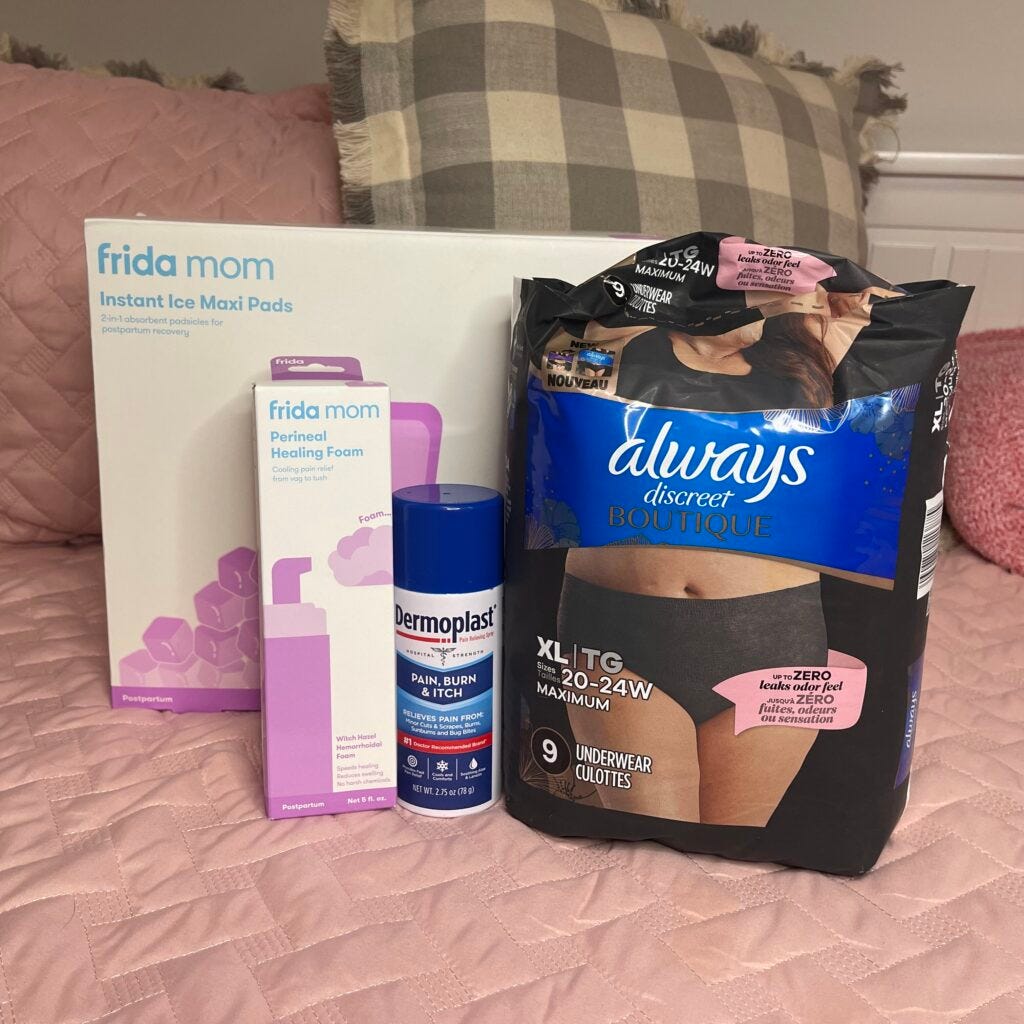 Always Discreet Adult Diapers - I preferred wearing these to the pads because nothing slipped or moved ever! It’s all “built in”, I guess you could say. It’s super easy to line the diaper with witch hazel pads or foam and just pull them up. You do however have to fully take your bottoms off to change yourself, so if you plan to go out and about during this time, just be aware of that! I even wore these when I just had some slight bleeding because of how much more comfortable they were than underwear and pads or liners!